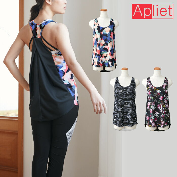 NAWA Apliet(アプリエット) バックメッシュPt.タンク スポーツウェア レディース ダンス フィットネス ヨガ M/L ブラック/ブルー/グレー